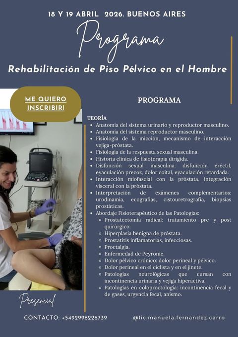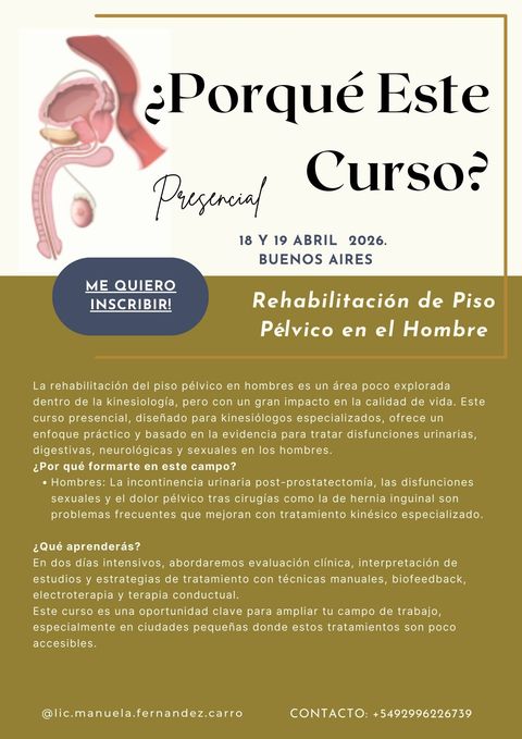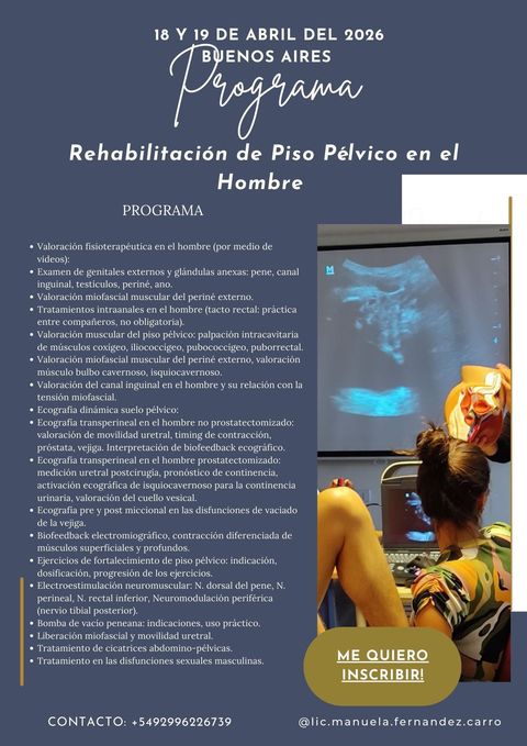 La rehabilitación del piso pélvico masculino es un área aún poco desarrollada dentro de la kinesiología, pero con enorme impacto en la calidad de vida de los pacientes y gran demanda clínica.